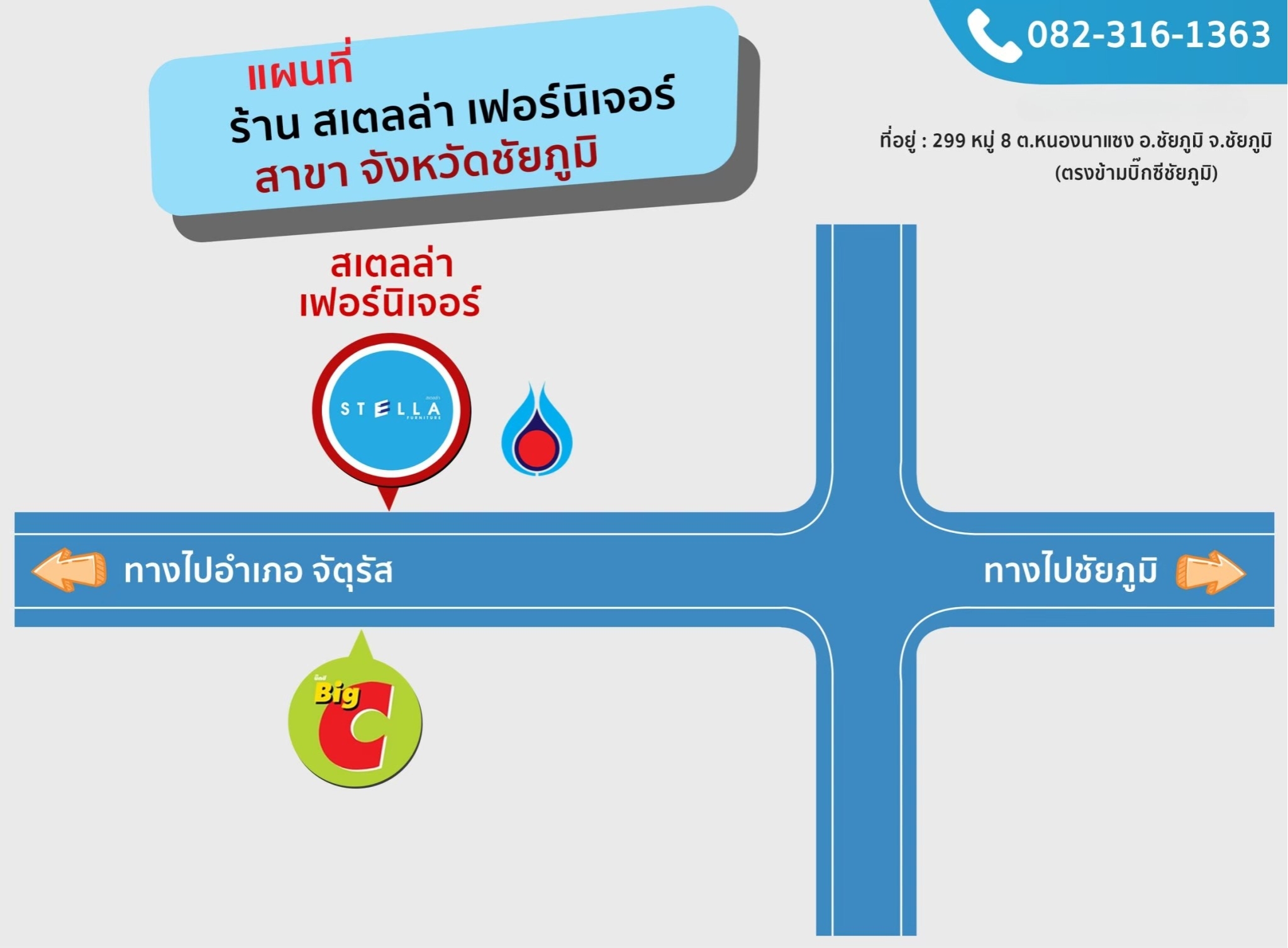 สเตลล่าเฟอร์นิเจอร์ สาขา ชัยภูมิ ที่อยู่ร้าน : ร้านตั้งอยู่ตรงข้ามบิ๊กซีชัยภูมิ